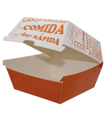 - Material resistente: Hecho de cartón de alta calidad o plástico de grado alimenticio, garantizando seguridad, durabilidad y protección para la hamburguesa.