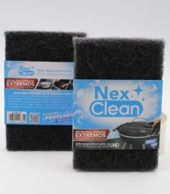 NexClean Brillo Negro Extra Fuerte es una esponja abrasiva de fibra negra gruesa y resistente, diseñada para trabajos extremos de limpieza.