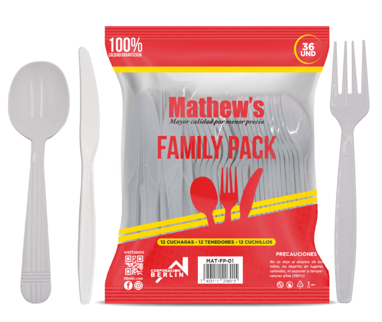 Optimiza tus eventos y reuniones con el Family Pack de Mathew’s, la solución perfecta que combina economÃa y resistencia. Este paquete integral está diseñado para cubrir todas las necesidades de tus comensales con un solo producto, garantizando higiene y practicidad en cada uso.